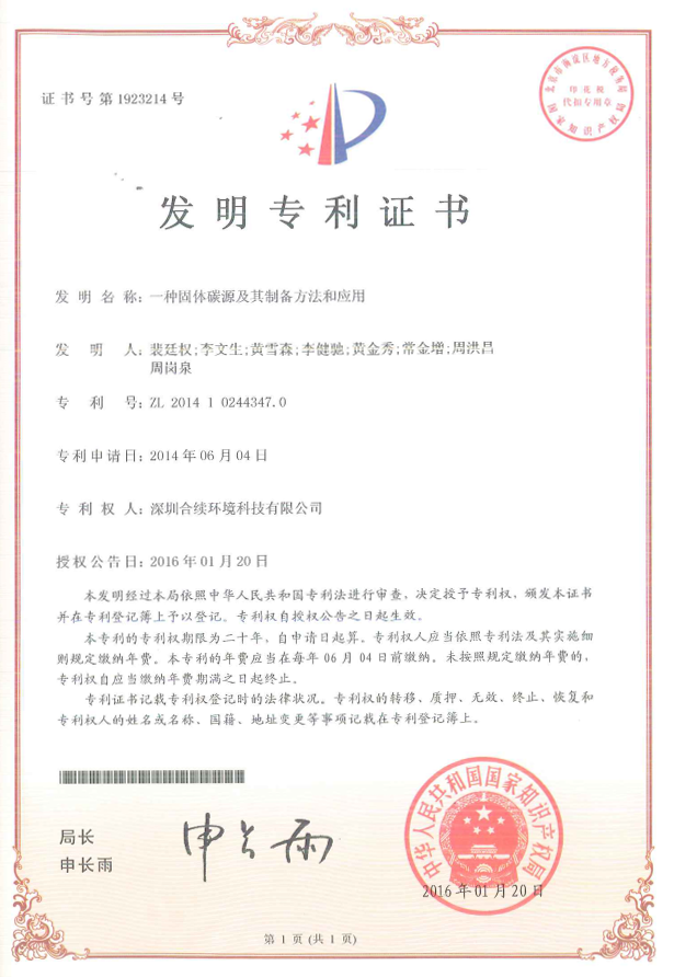 發明專利 一種固體碳源及其制備方法和應用