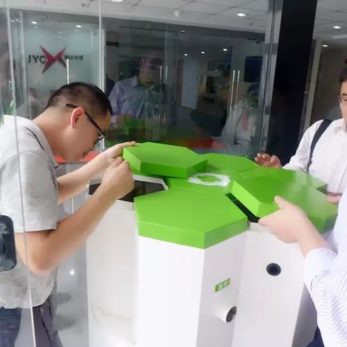 ▲圖為清華環境總裁班的學員們正認真地了解設備內部的功能構造和設計特點。
