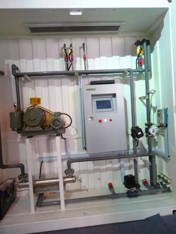來一張同樣是漂亮的不像實力派的耐斯耐小妹的正面照,佇立在閃閃發光的控制柜左邊,SBR小型污水處理設備靜靜的在其后搶了鏡頭。