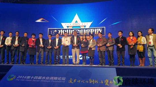喜訊!合續環境榮獲"2015年度中國水業細分領域及單項能力領跑企業"!