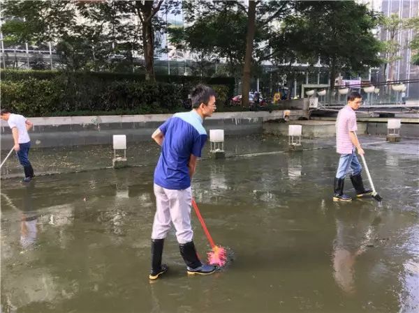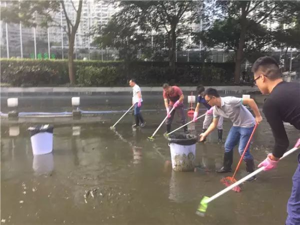 因本次水池整體清潔任務(wù)急、處理面積大、清潔人員短缺,2015年10月28、29兩日,在公司領(lǐng)導(dǎo)帶領(lǐng)下,辦公室、人事部的緊急組織下,深圳合續(xù)20余名男員工參與了“景觀水場(chǎng)地清潔工作”。