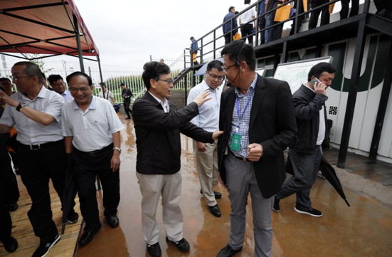 丁副省長詳細查看中國罐的出水效果,并對處理效果予以肯定