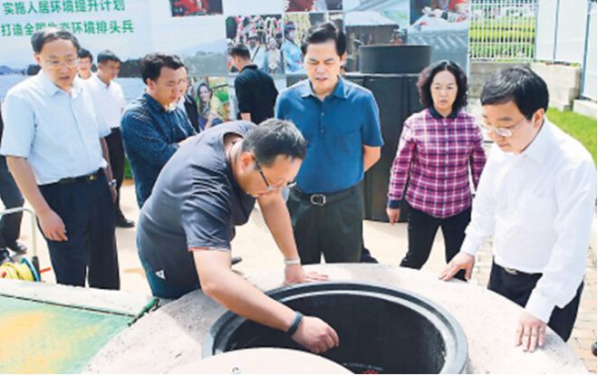 在看到現場展示的中國罐后,陳書記指出:分戶式污水處理設備值得提倡,因為我們很多村莊是很分散的,你要把他們都集中起來,那成本就太高了。