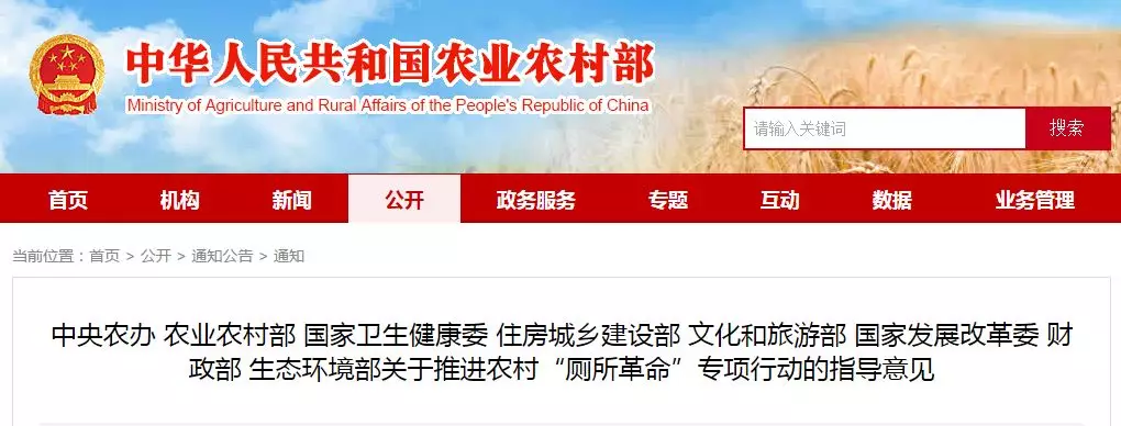 近日,中央農辦、農業農村部、國家衛生健康委、住房城鄉建設部、文化和旅游部、國家發展改革委、財政部和生態環境部聯合發布《關于推進農村“廁所革命”專項行動的指導意見》,指導各地農村改廁工作,提升農村人居環境建設水平,推進農村“廁所革命”專項行動。